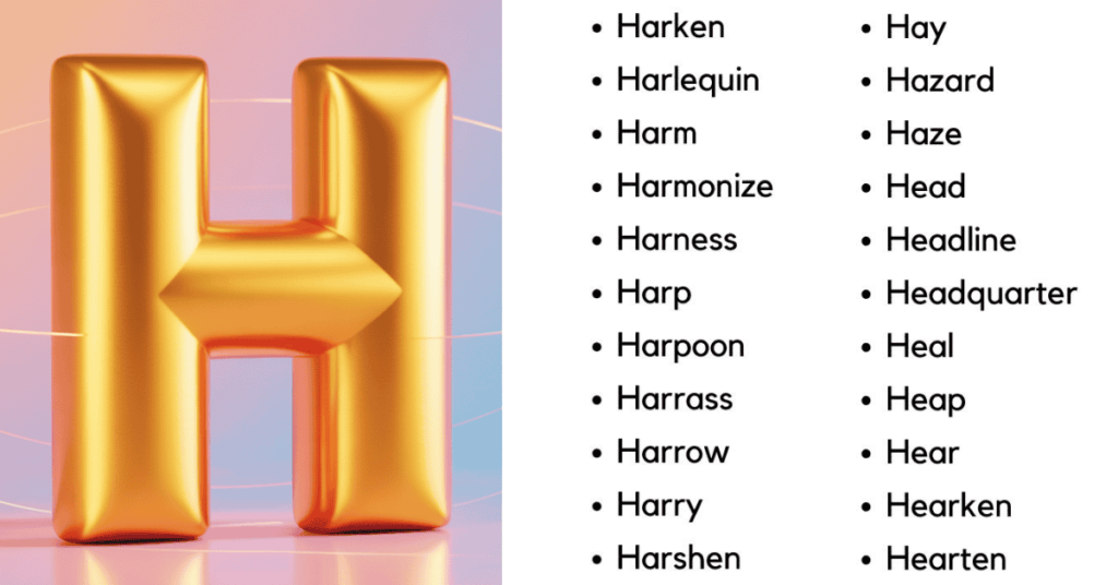 The English language heavy lifters are verbs. They take the sentence subject typically a noun and make it action oriented.We can tell that Jude hears or Mary stops because of the verbs.Take pleasure in this extensive list of everyday verbs that begin with “h.” Watch your vocabulary expand as you use it as a pleasant addition to your reading.